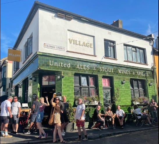 We pull up outside. Those familiar green tiles. The old name still there on one side, and a new sign above it, telling me this is “Village”. It is the fucking Horse and Groom.