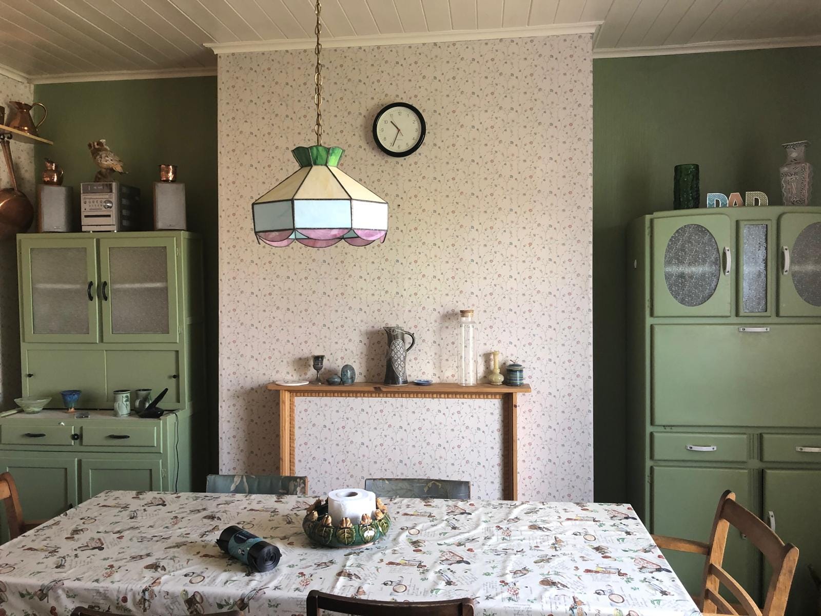 There were two separate food cupboards, one in each alcove either side of the chimney breast. To the left (a pale green), Colin’s cupboard, for so it was named. Here was all the exciting food, including tins of lychees, and of course the Kelloggs Cornflakes. To the right (a garish pink in our day), our cupboard containing own-brand cereals, marmite, jam, and lots of things beyond their recommended use-by dates, bought half price.