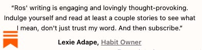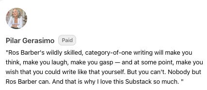 All my Friday essays are free, but I will sometimes add a little bonus for paid subscribers at the end. This is partly gratitude to those who are helping me pay my bills and partly a necessary privacy screen for the juicier stuff. Things I might paywall: