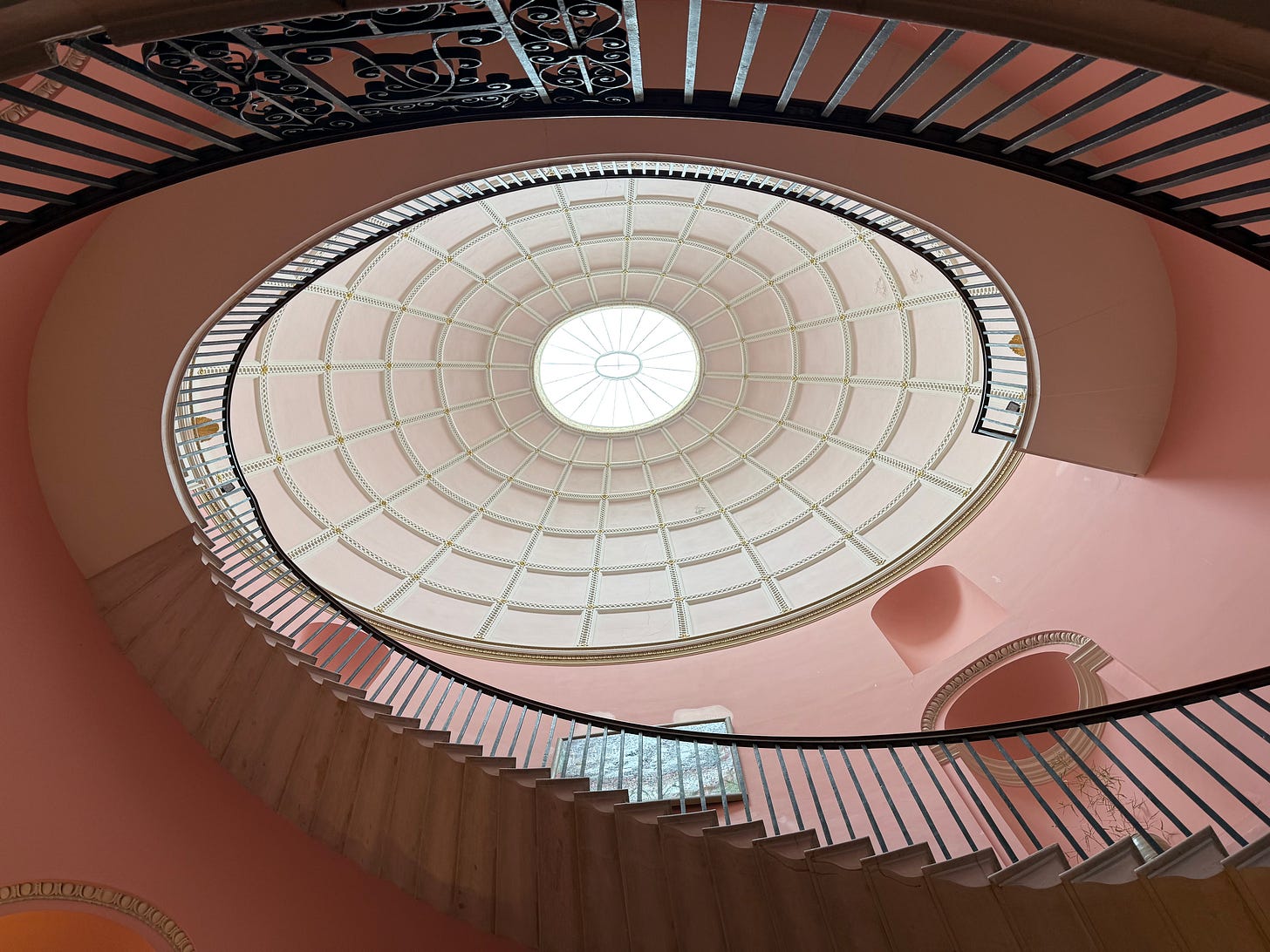 The bare feet were not obligatory. Take your shoes off in the grand Palladian entrance, yes. Wear slippers or socks against the cold of flagstone floors. The polished granite staircase. But later, as we and the week warmed, after thirty minutes mindfully treading barefoot on cushioned lawns, there was a tremendous freedom in continuing, barefoot, into this huge, grand-yet-welcoming house.